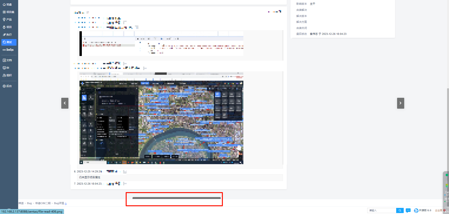 禅道开源版本18.6,bug详情页面,内容太多的情况下,操作栏就不显示了,必须要缩放很小才能展示已解决