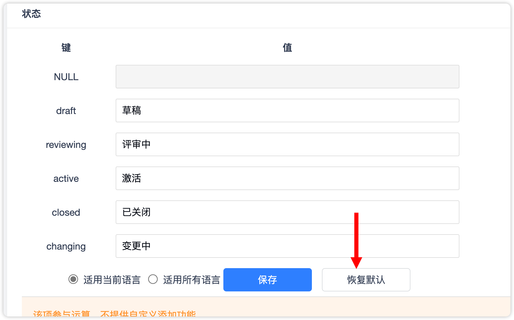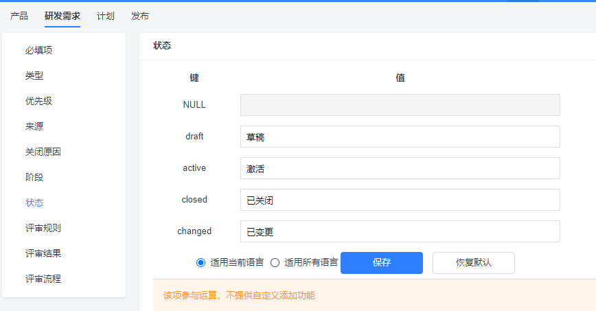 我在后台的功能配置中,在产品的研发需求的状态中并没有看到reviewing的键值