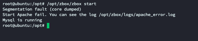 Start Apache fail. You can see the log /opt/zbox/logs/apache_error.log