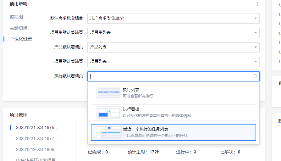 执行默认着陆页新增一个选项:执行所属项目设置已解决