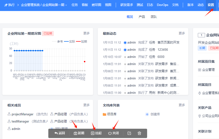 禅道-李锡碧2024/01/17 1. 目前迭代的状态,是需要手动维护的,在迭代-设置页面进行维护。
