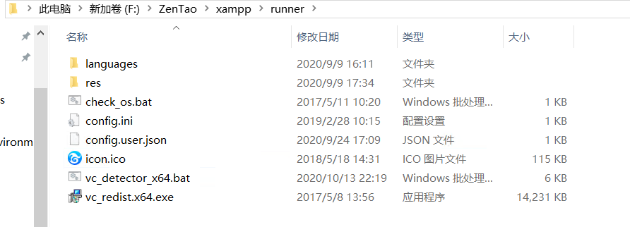 🍉 xampp/runner/vcredist_x86.exe 安装,然后再启动看下。 如果不可以的话,那么建议安装最新版本的一键安装包的禅道环境,这块做过兼容处理。 |