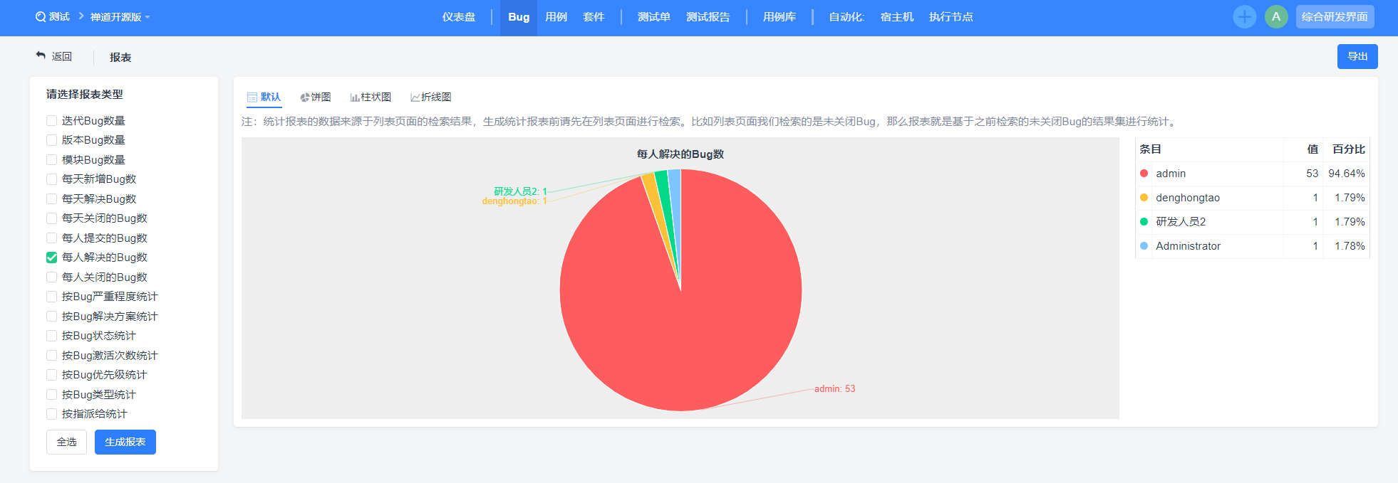 请问一下禅道有办法可以统计一个项目当天每个人解决bug的数量吗已解决