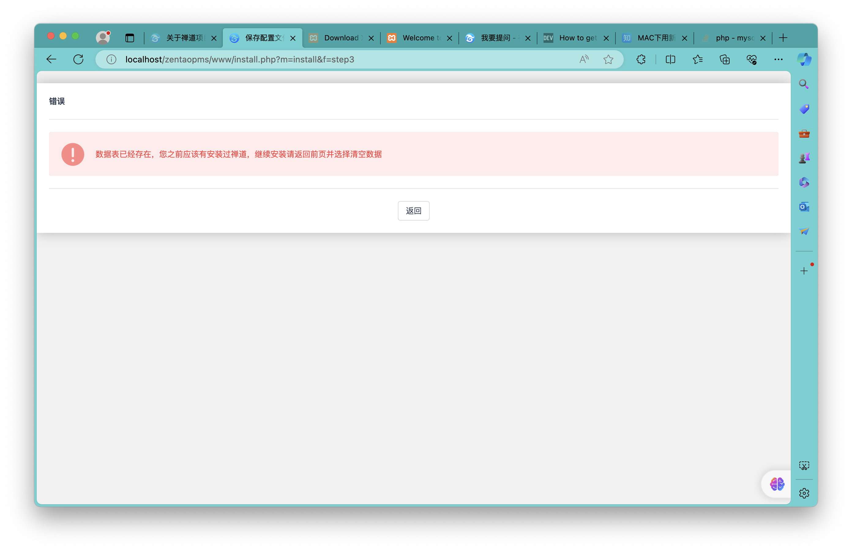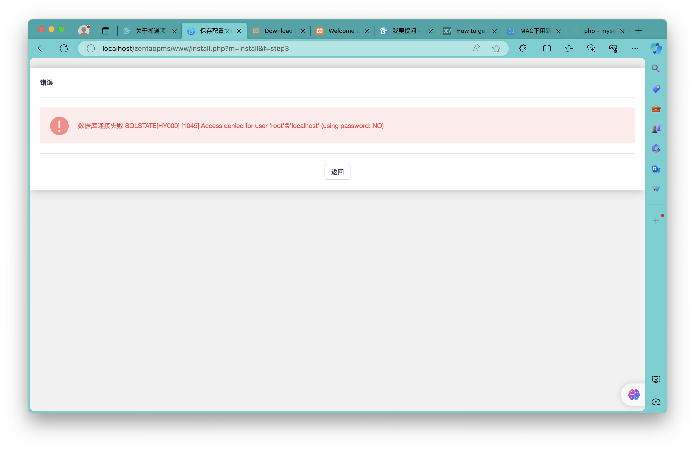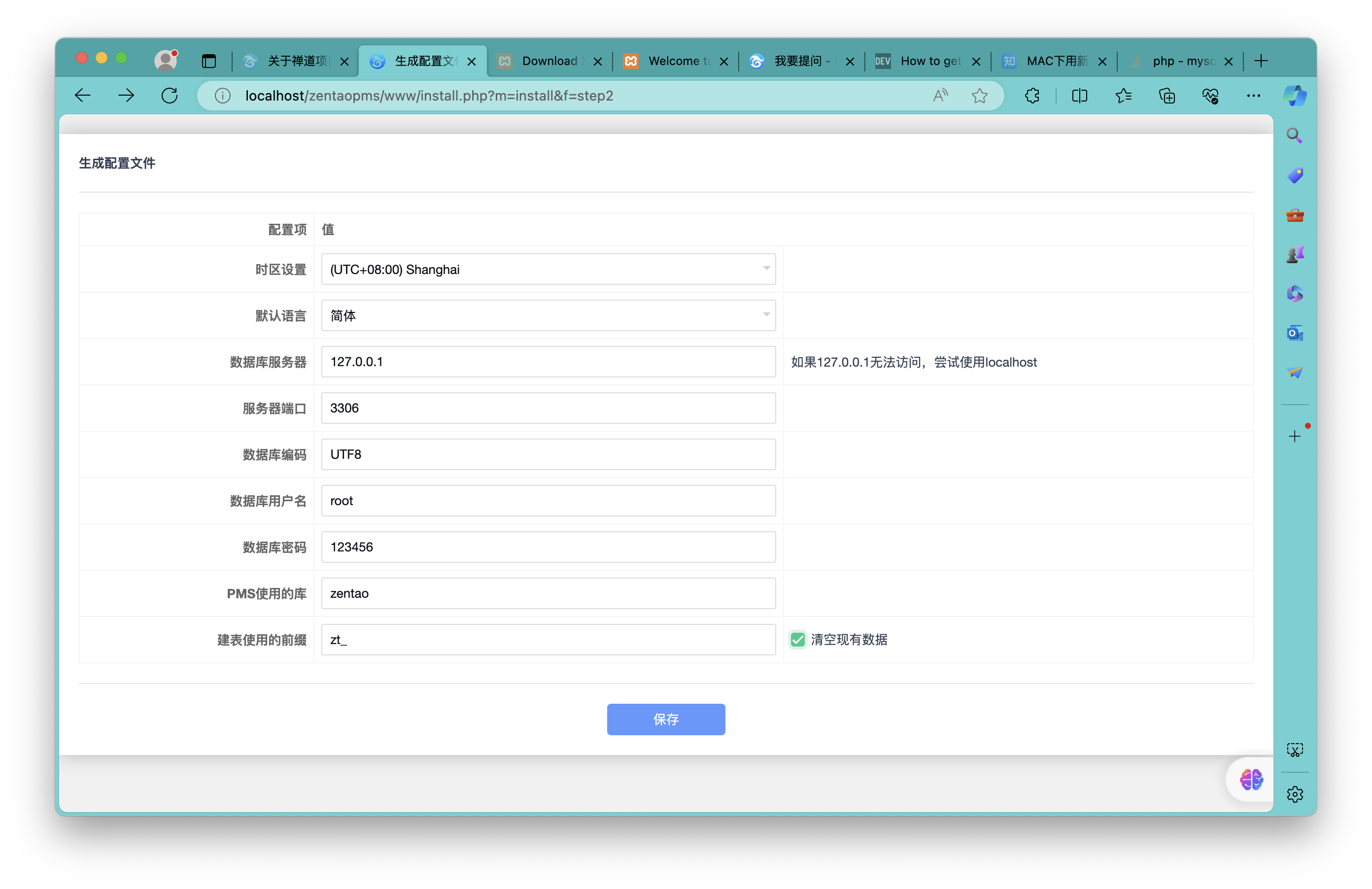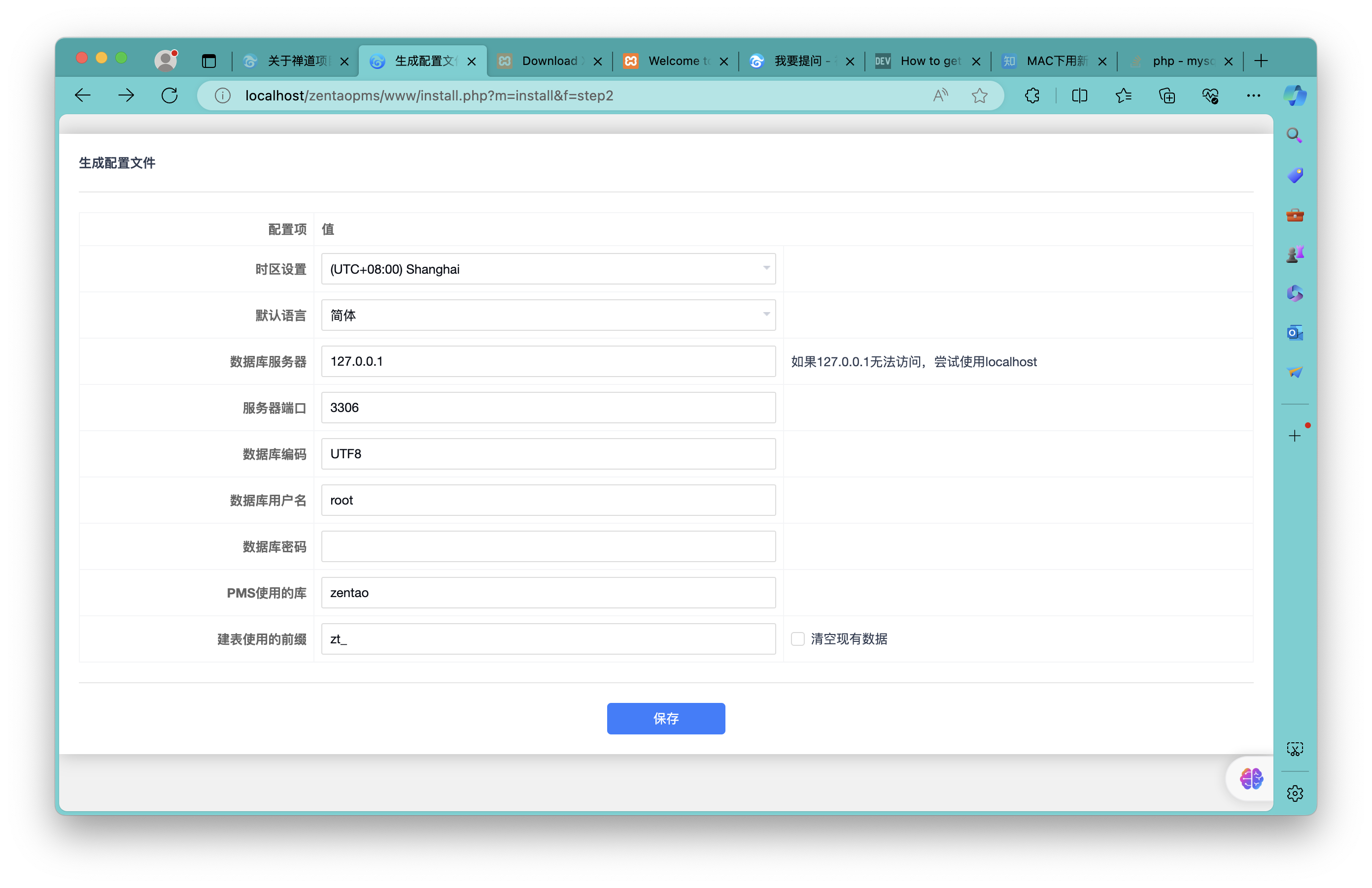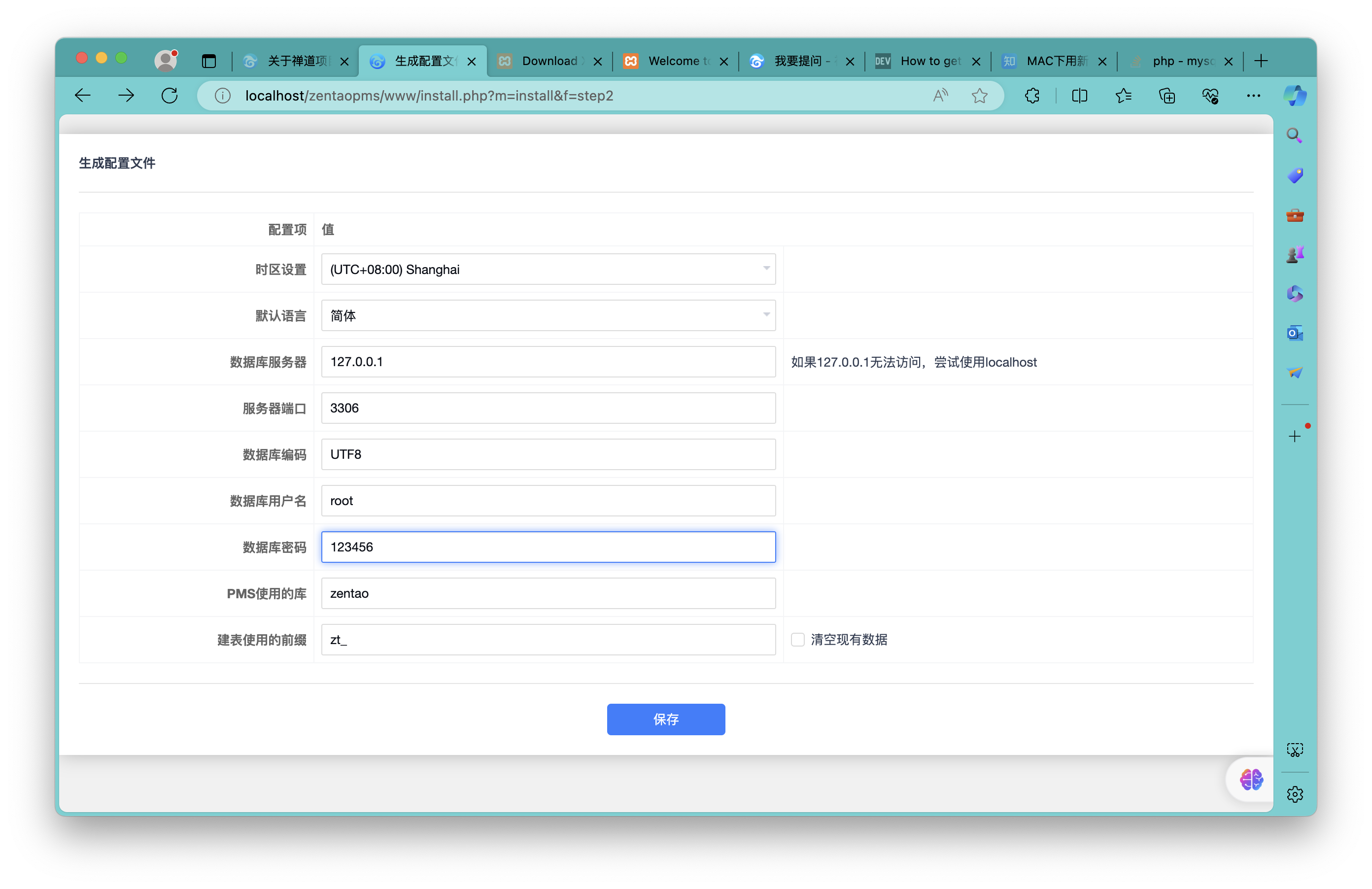 MAC下用XAMPP安装禅道,到保存[生成配置文件]出现报错已解决