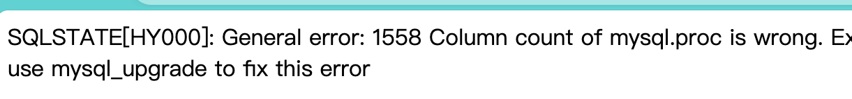 出现这个错误的时候,试试mysql_upgrade 呢? mysql报错:Column count of mysql.proc is wrong. Expected 21, found 20 – 行星带 (beltxman.com) 还有问题的话,可以联系官网顶部商务QQ,邀请加入技术交流群一起看下。 |