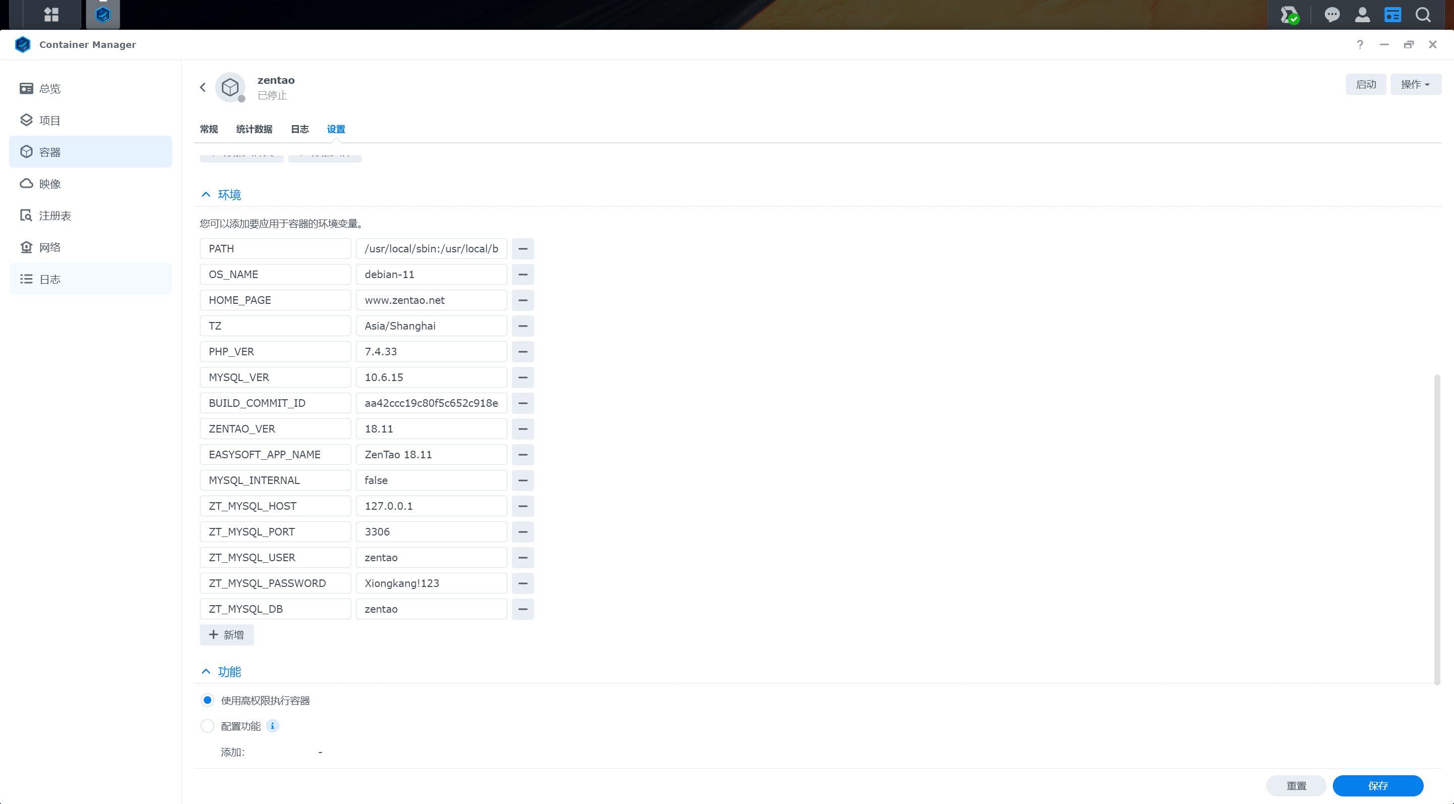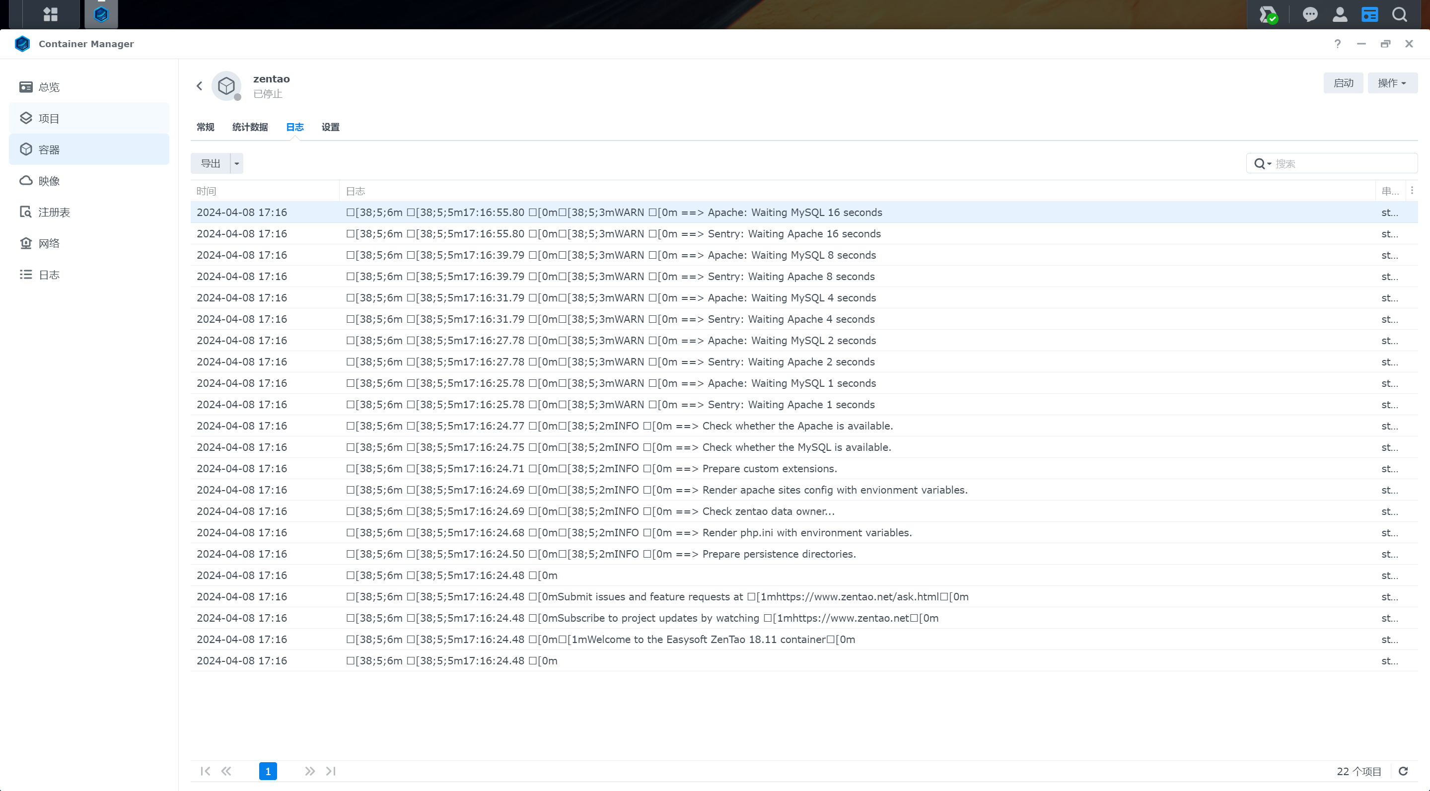 使用群晖docker搭建测试使用,一直提示apache和mysql等待中