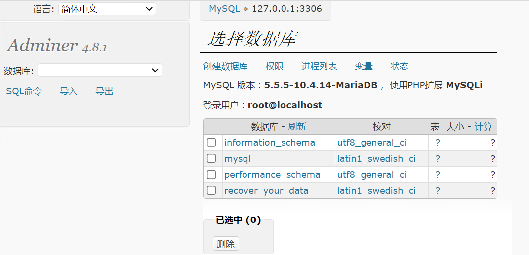 禅道一键安装包,点击开源版,显示空白页面,发现整个数据库不见了,该如何处理