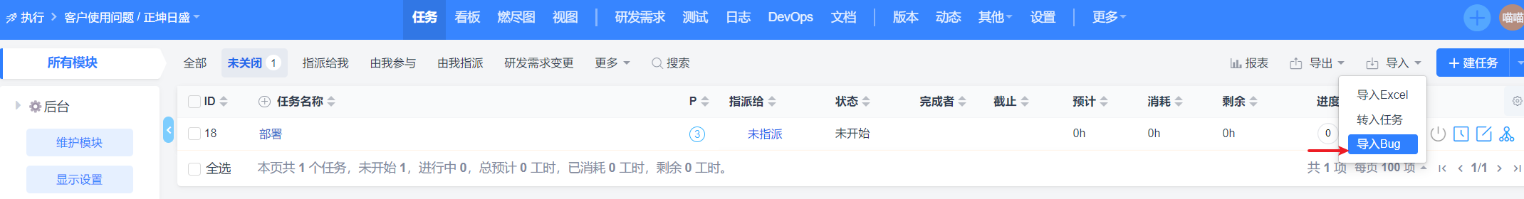 禅道版本:禅道开源版 18.11
