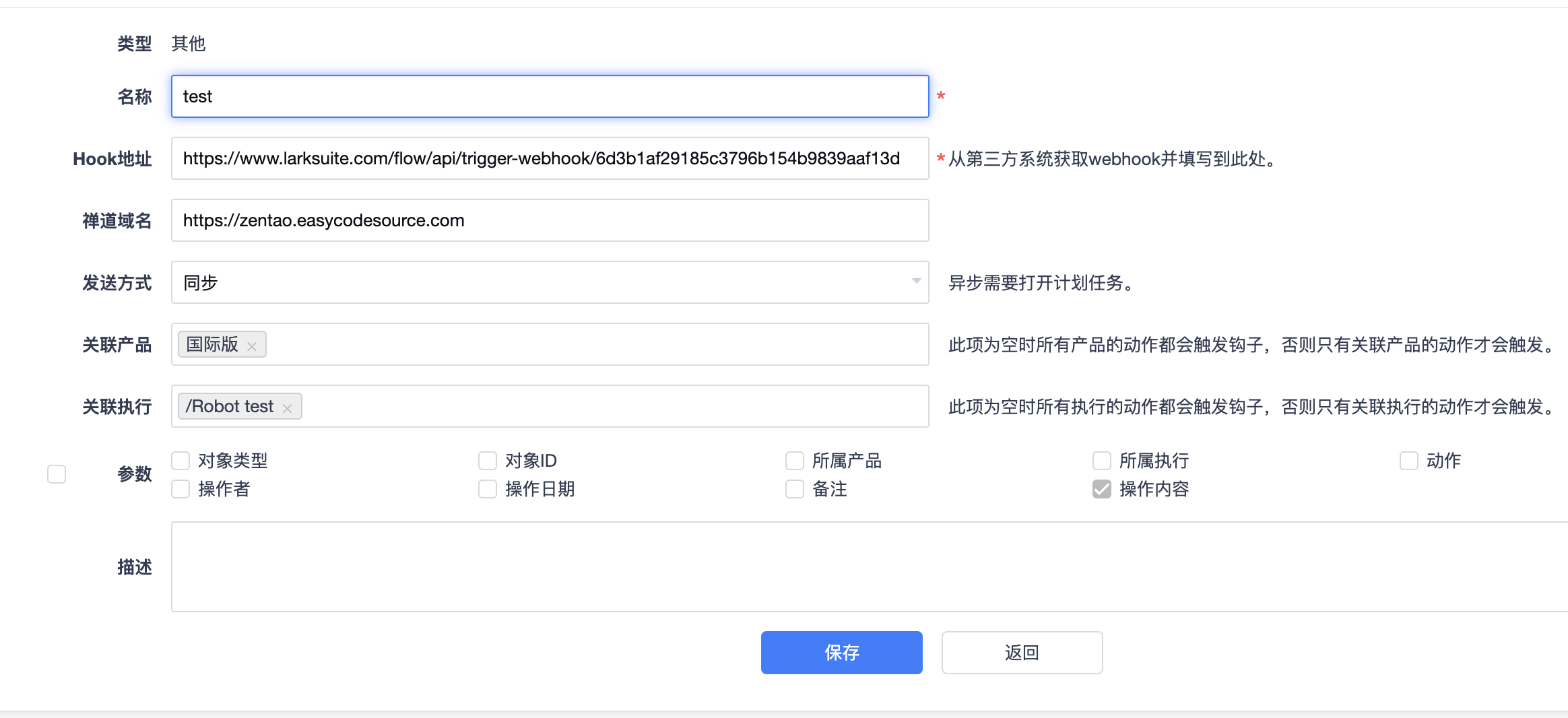 🍟 你在禅道的机器上用命令行访问下lark的服务地址,看看网络是不是通的。有可能是网络是被隔离了。 |