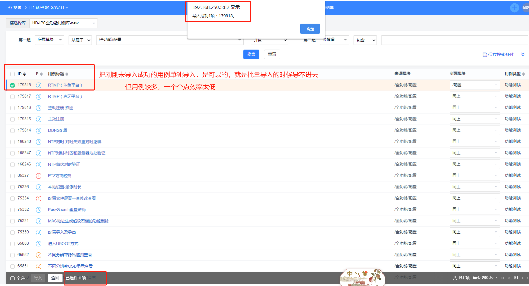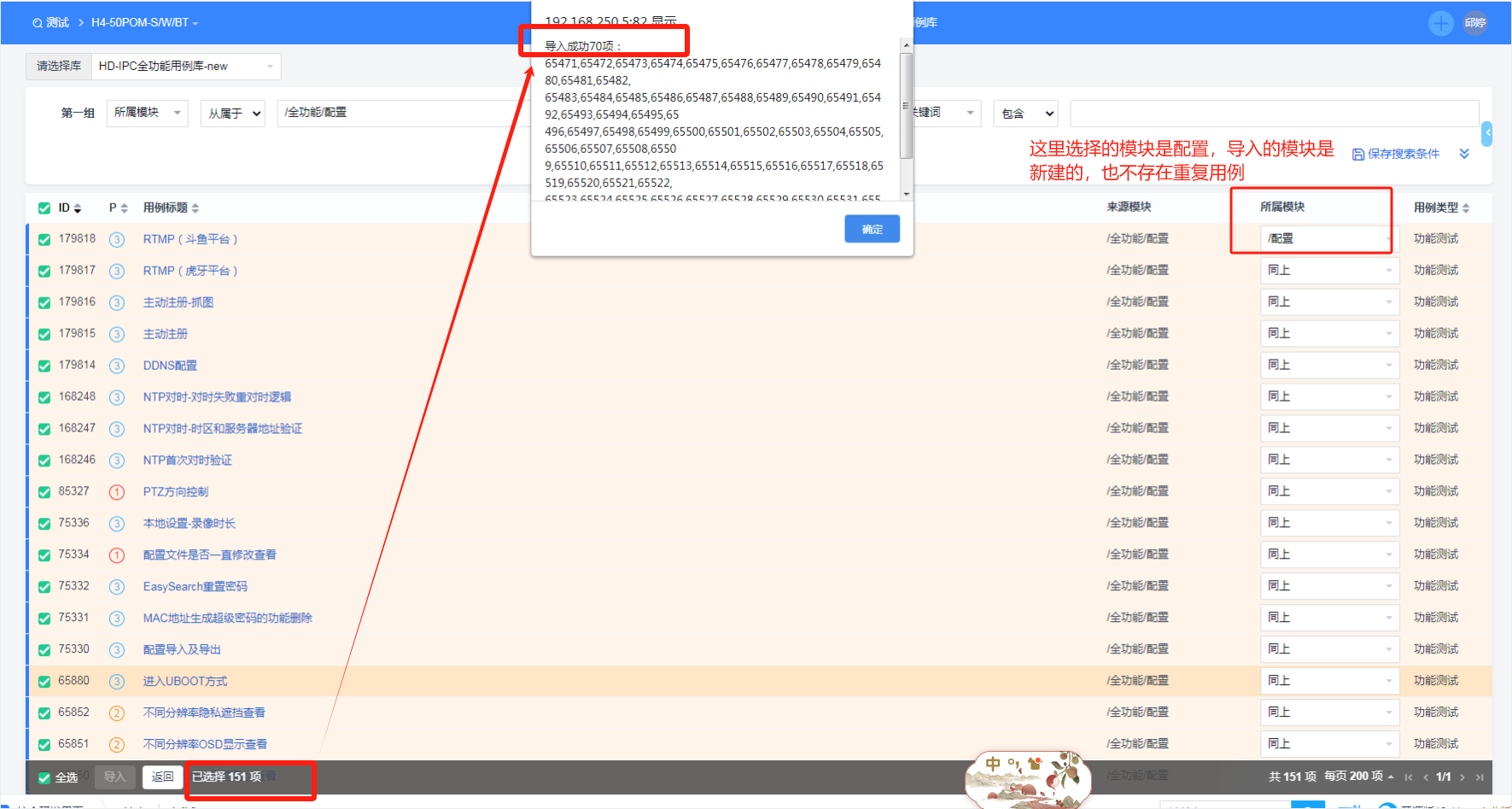 选过根目录,选过对应的配置目录,但用例库导入不全,151条用例最多导70条;拆开导入也不行;把模块里之前的用例删除了,重新导入,也最多能导70条;目前导入94条后,单独导入一条都无法导入了