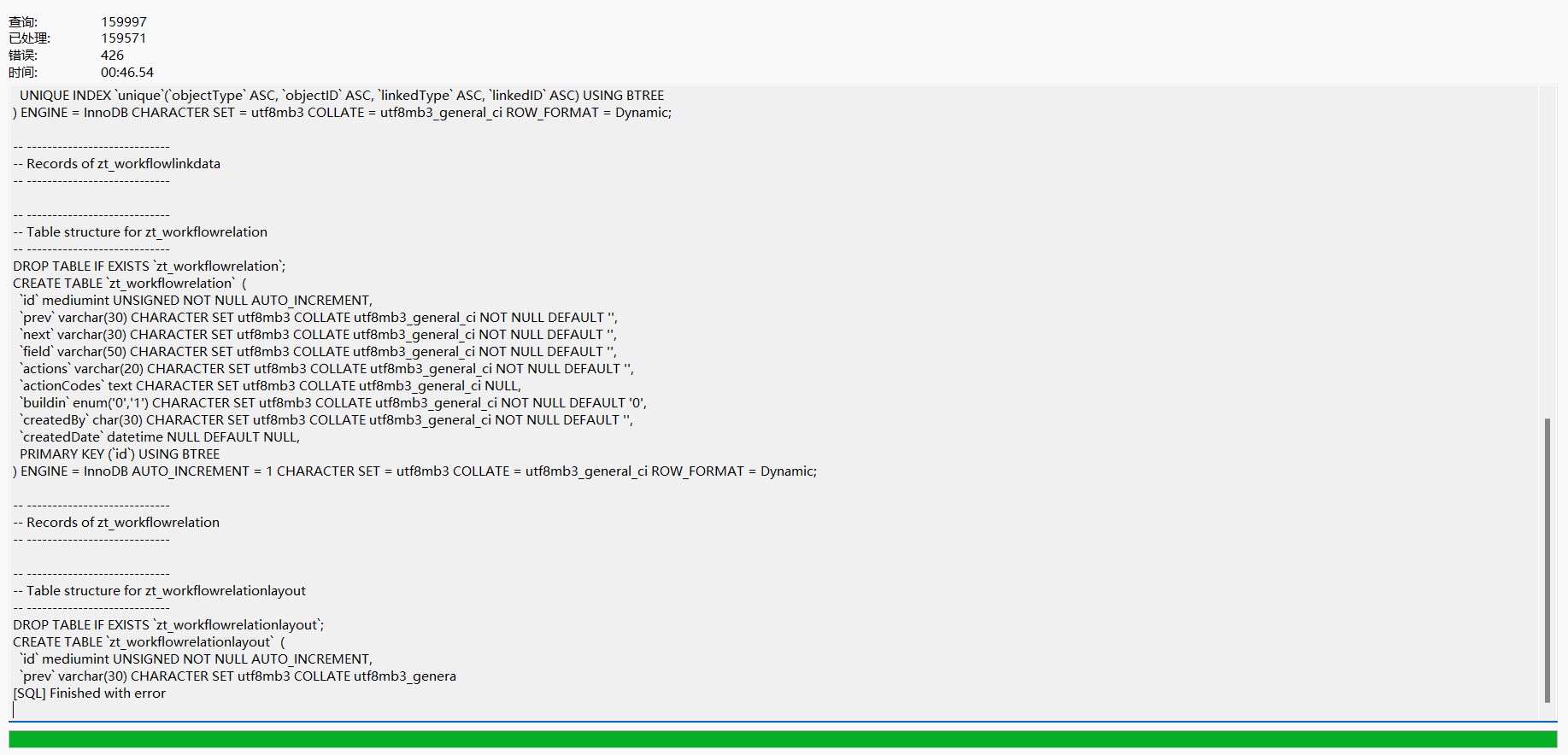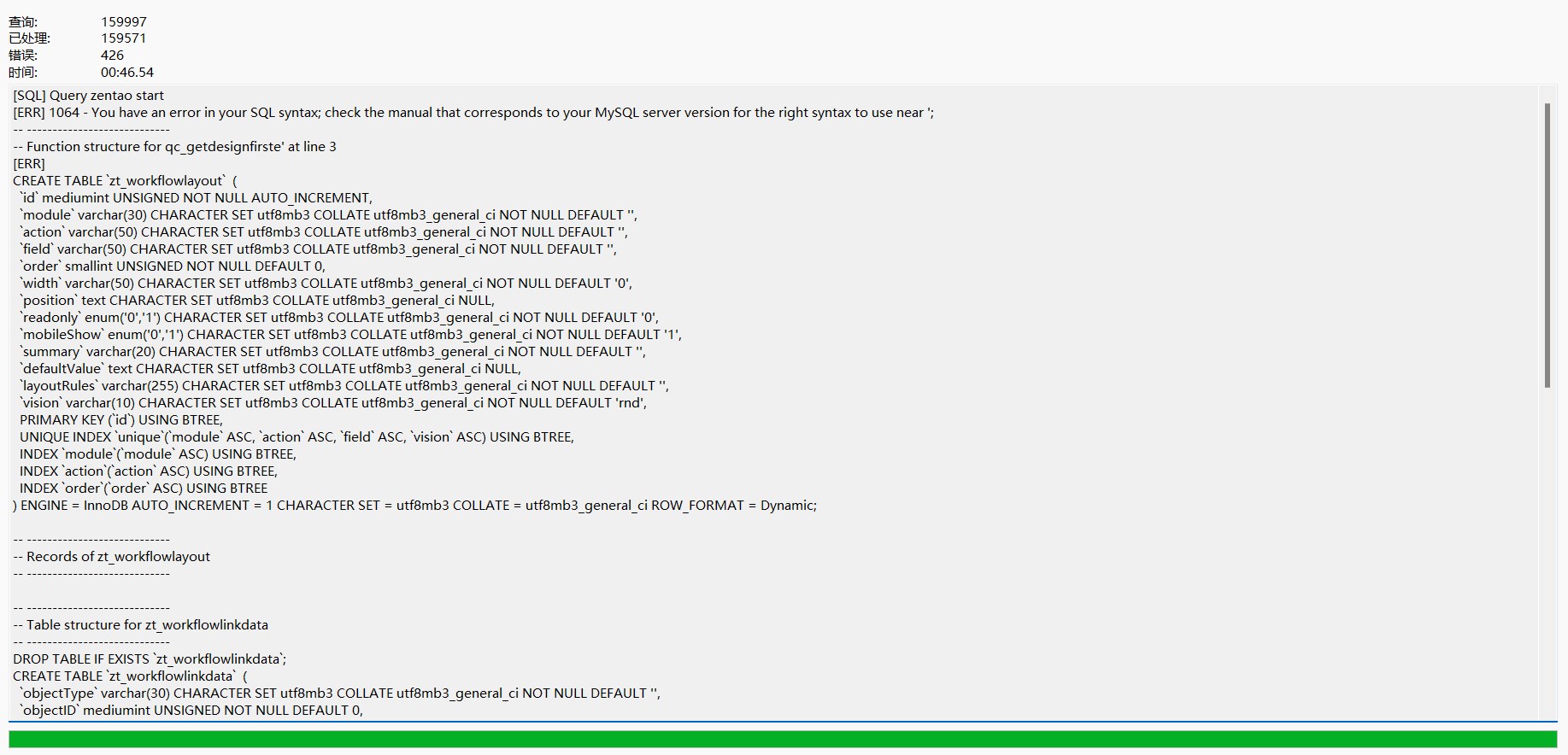 597274禅道使用外置的数据库,在导出为sql文件之后,导入新的禅道数据库提示字段格式不对,没有对应的函数,在原来的数据库中也没有修改过任何东西,这怎么解决已解决