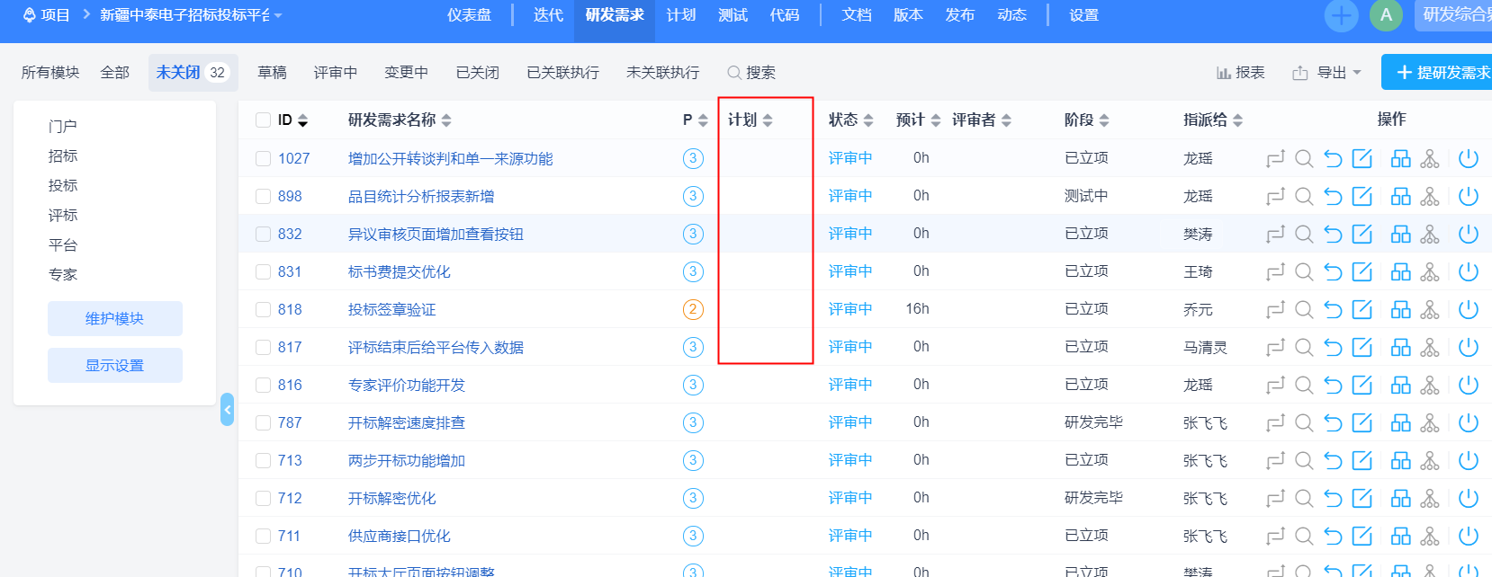 为什么我在禅道上项目中的研发需求列表中自定义列显示,在某个项目中就是 看不到【计划】的这个字段呢, 其项目上都能看到这个字段都有已解决
