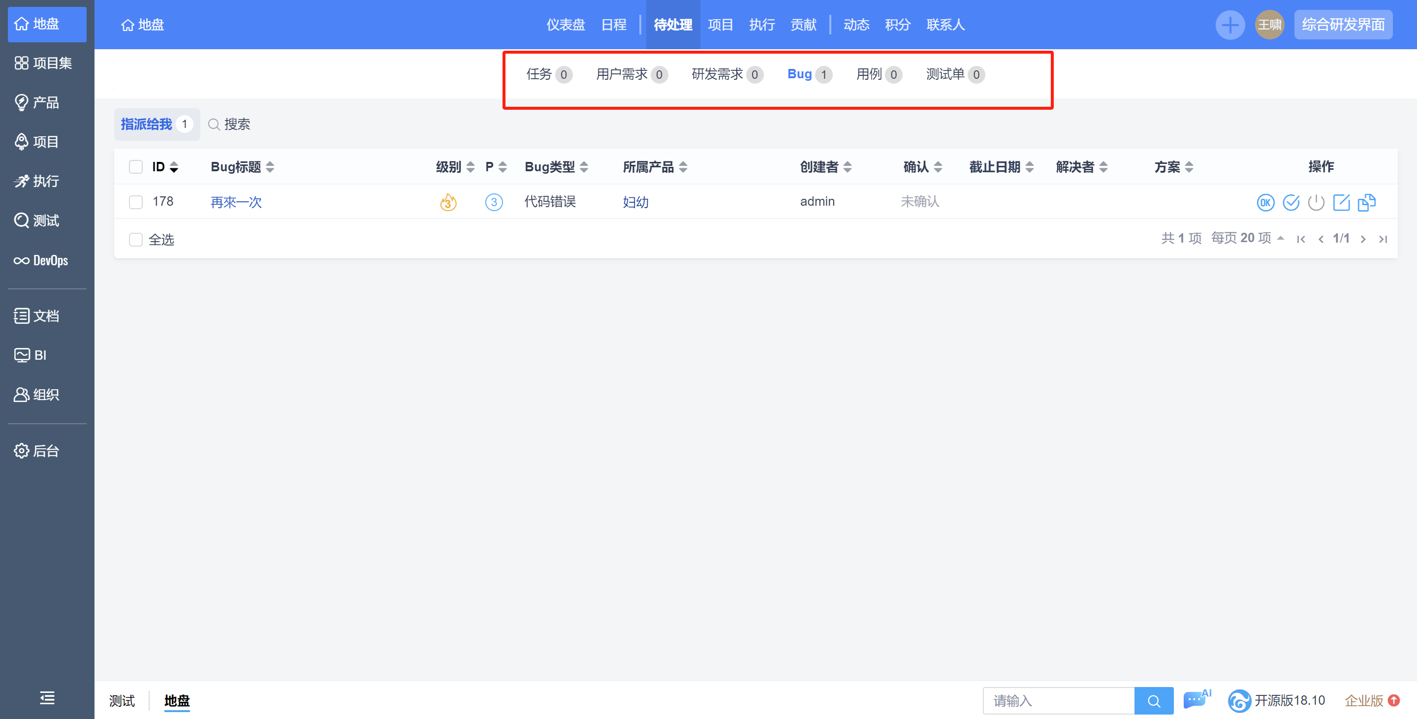 请问待处理tab上的数据是怎么获取到的?禅道版本:禅道开源版 18.10