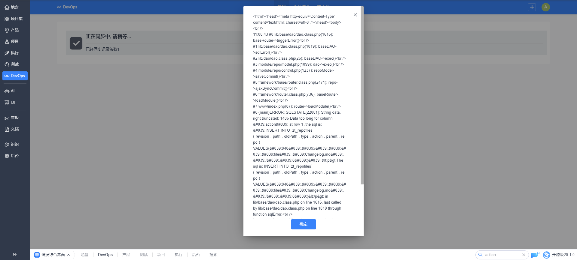 关联代码库时弹出数据库插入错误,action列长度不够怎么办!