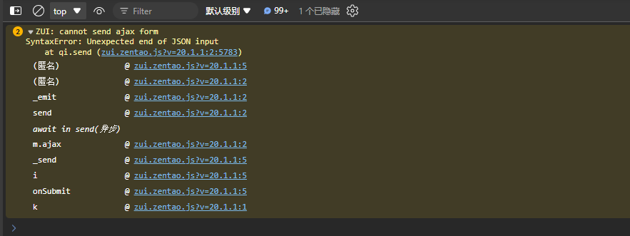 在用例模块添加完成用例后导入到用例库无响应,控制台提示如下