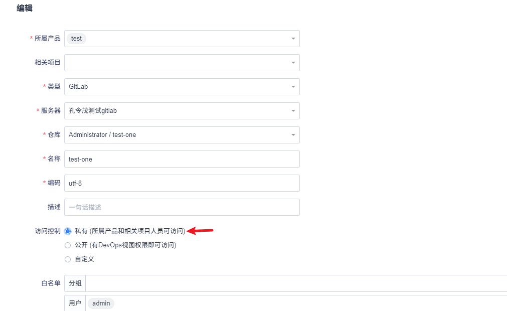 2. 管理某代码库的可见范围 点击代码库中某代码库编辑按钮,设置为私有 这样可以控制代码库的可见范围