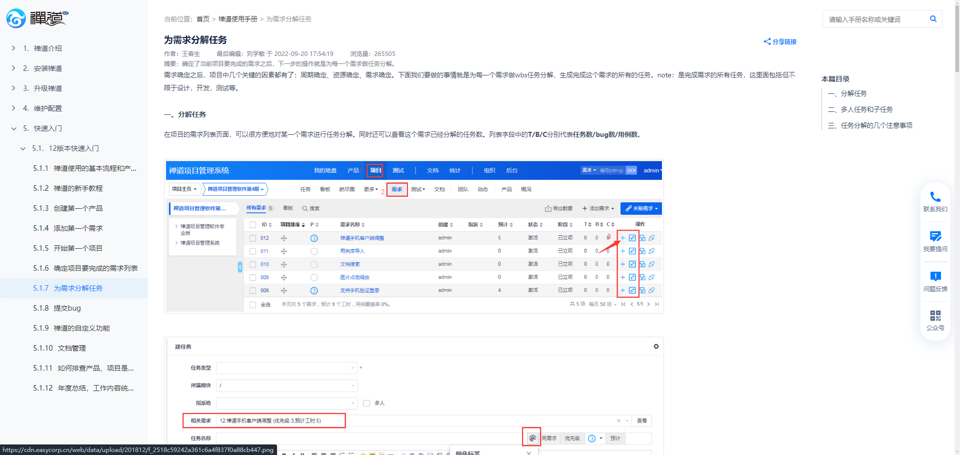 597648为什么使用手册和实际页面的操作栏不一样,应该如何关联子需求及拆解任务已解决