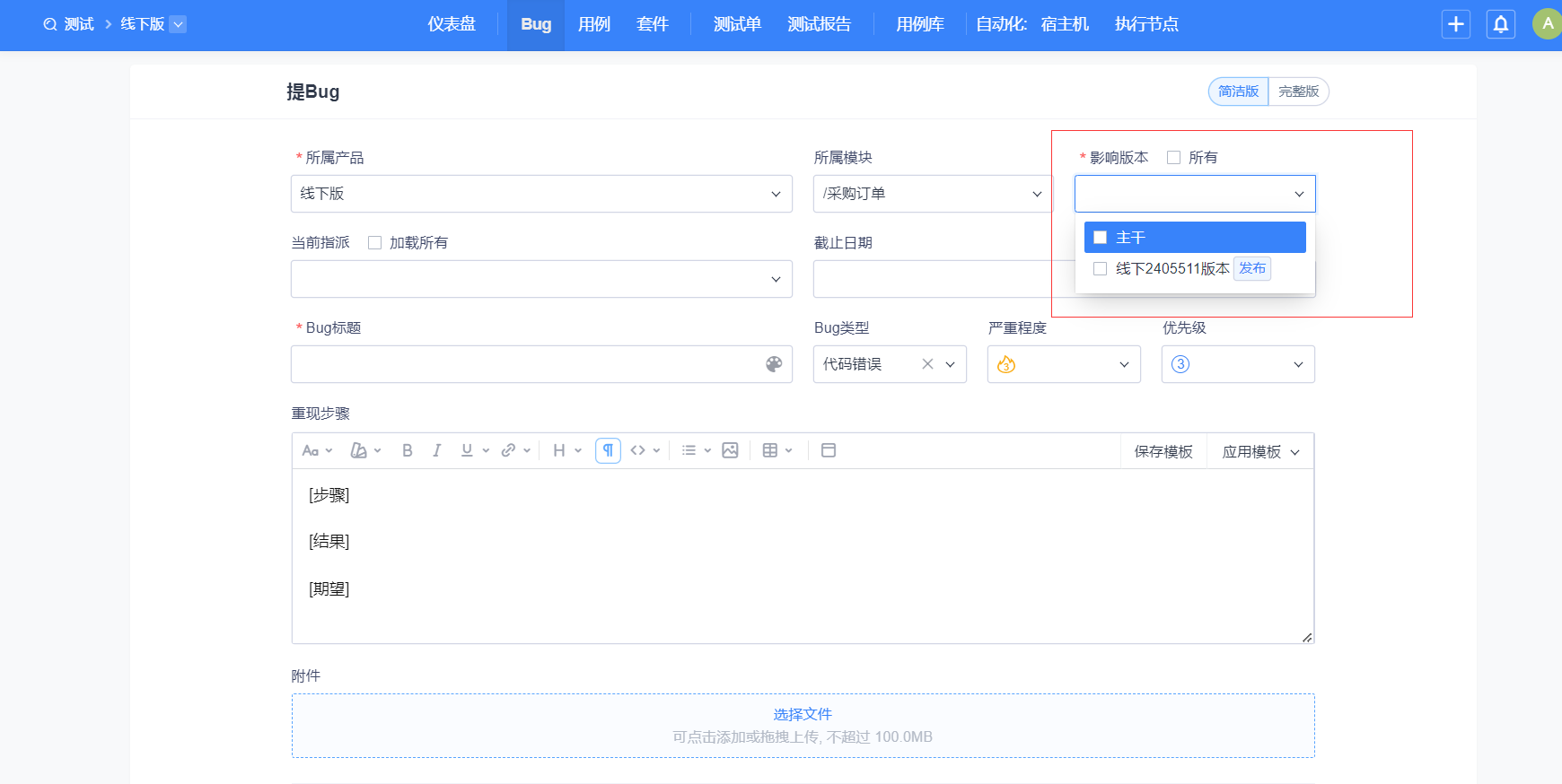 新建/编辑bug时 缺少新建版本按钮 且未找到新增版本下拉框选项的地方
