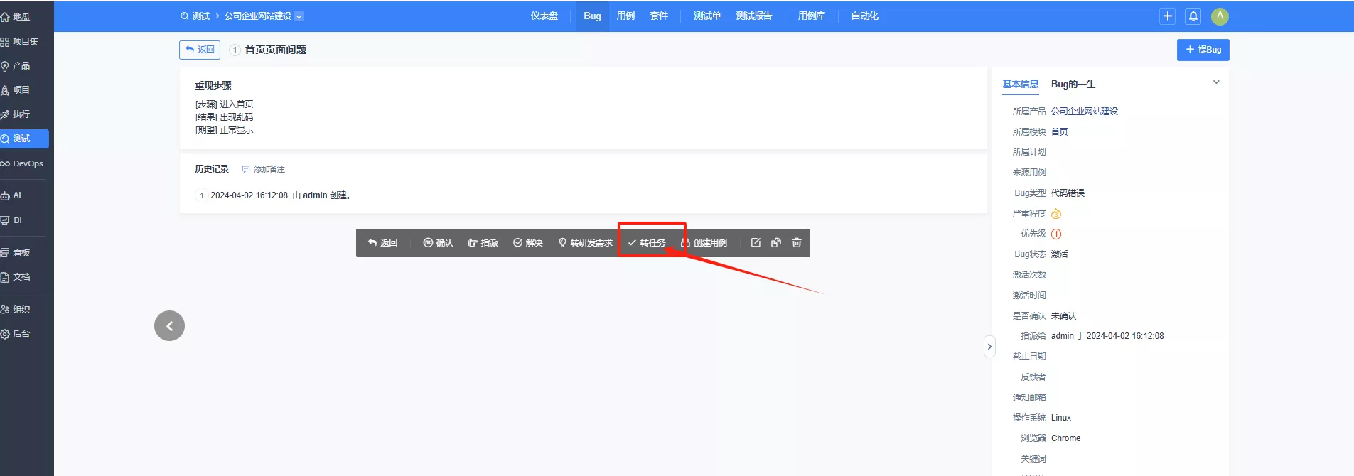 🎂 您好,左侧导航栏的测试以产品为维度,管理该产品下所有用例、Bug、测试单等;执行中的测试以当前执行 / 迭代为维度,仅展示该执行关联的测试相关数据。可以理解是产品关联的所有项目和执行所产生的数据都可以到测试下查看及维护。 禅道的bug指派只能指派一个人,如果必须指派多人可以将bug转为任务再指派多人。 另外,有禅道使用问题,也可以联系客户经理,邀请您加入技术交流群沟通,即时性会更好一些。 |