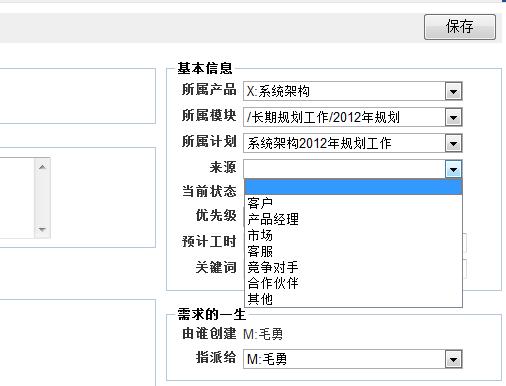 (2)产品视图里,需求有个“来源”项,点“编辑”后,这个来源项不会自动选中。