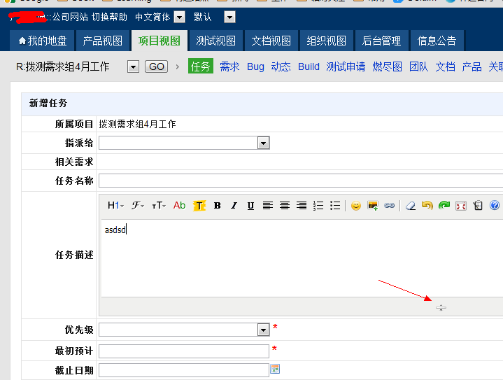 2.项目视图的编辑器无法正常呈现,描述里面输入的文字无法呈现,需要点击拖拽拉大输入区域才能刷新出来