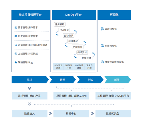 A: 禅道通过集成Git、Jenkins等工具和自研自动化测试框架ZTF,支持DevOps的实施。