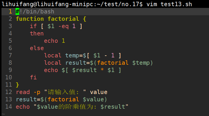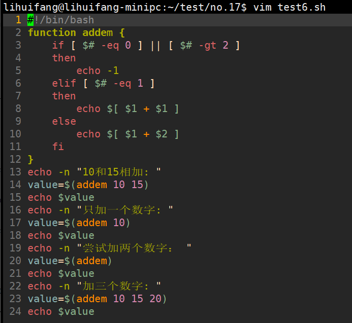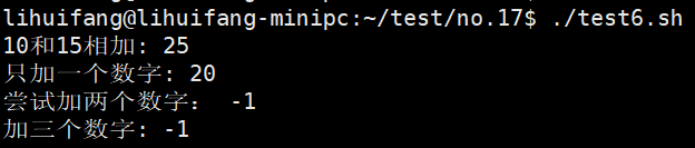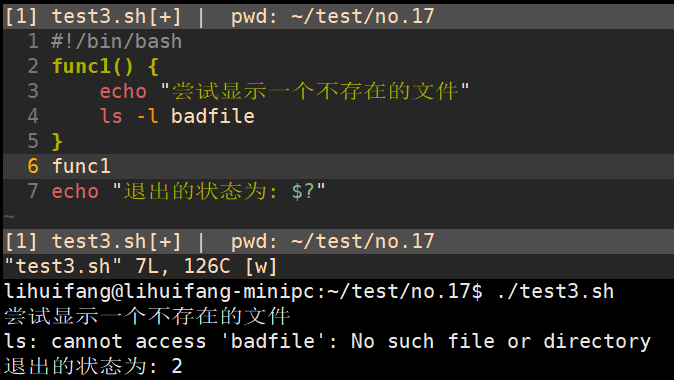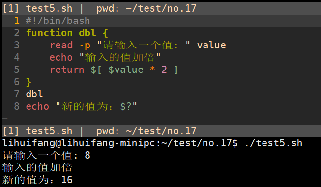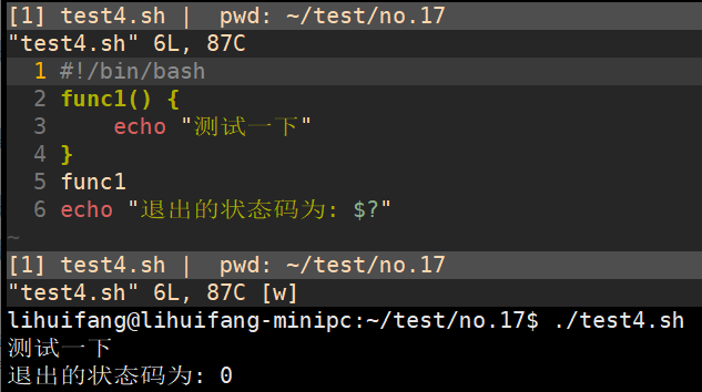 在函数执行结束后,可以用标准变量$?来确定函数的退出状态码。