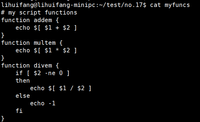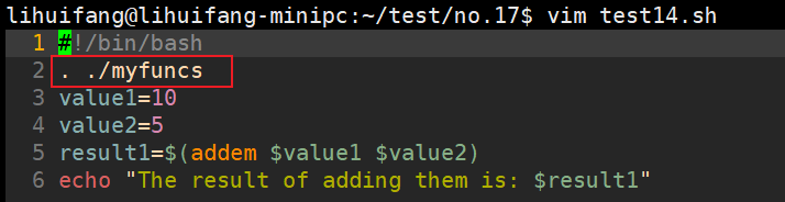 source名称也称作点操作符,要在shell脚本中运行myfuncs库文件,只需添加下面这行: