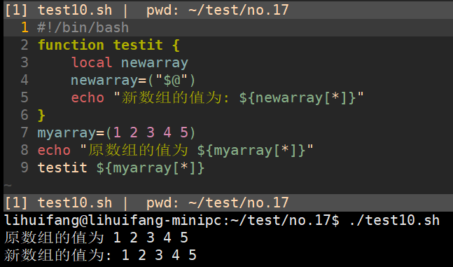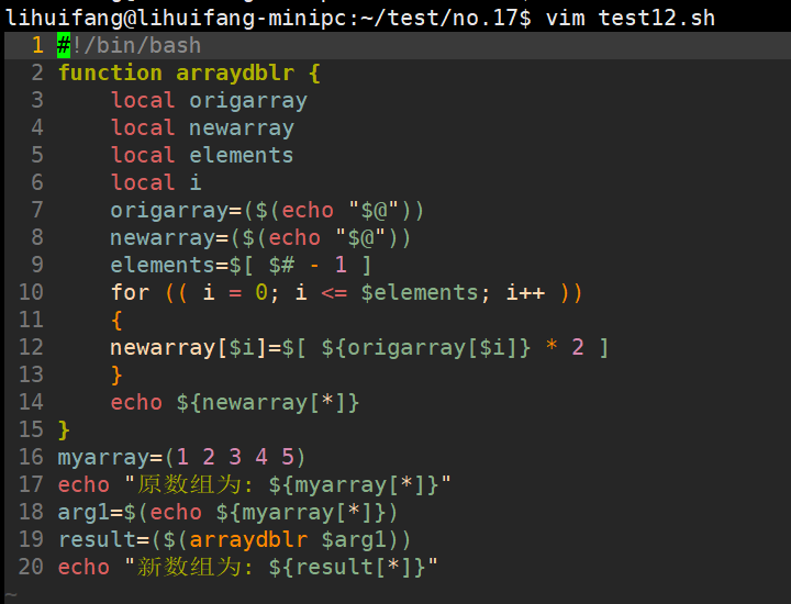 函数用echo语句来按正确顺序输出单个数组值,然后脚本再将它们重新放进一个新的数组变量中。