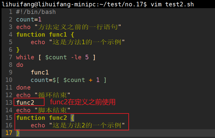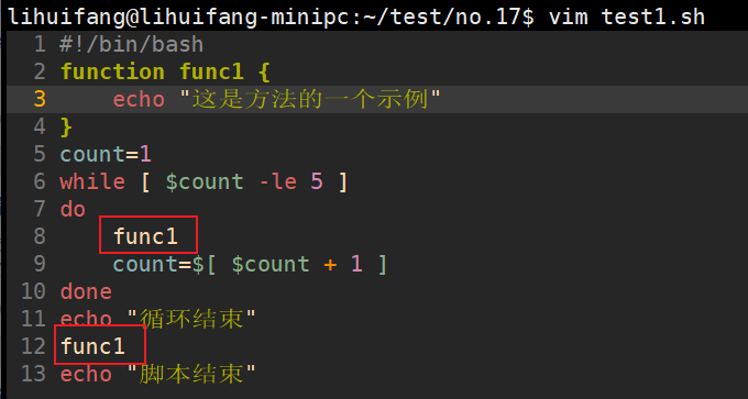 要在脚本中使用函数,需要在行中指定函数名。