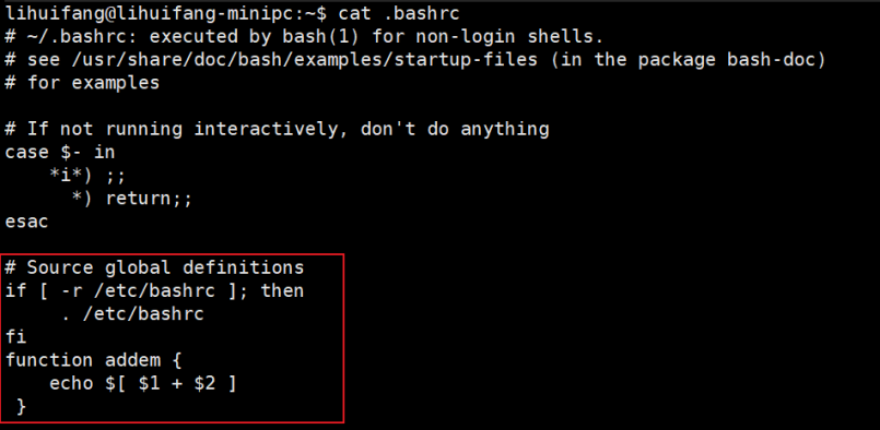 7.2 在.bashrc 文件中定义函数