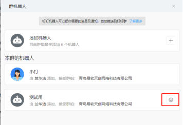 已添加的群机器人,在点击群机器人列表右侧的设置按钮,可以进入群机器人详情页面,这样可以获取到Webhook地址和加签安全设置的密钥,根据上述介绍的步骤在禅道中进行配置。