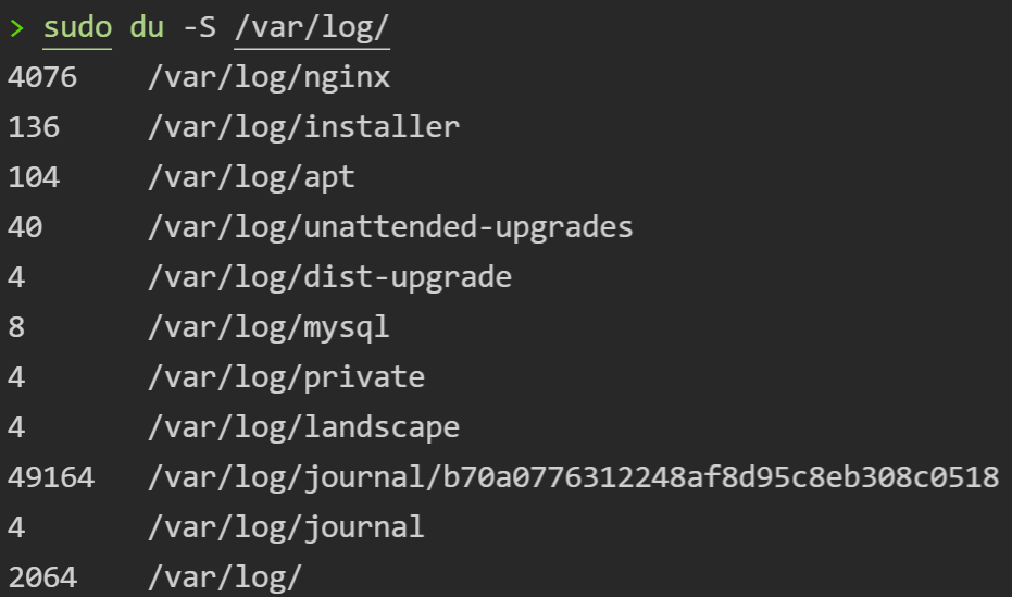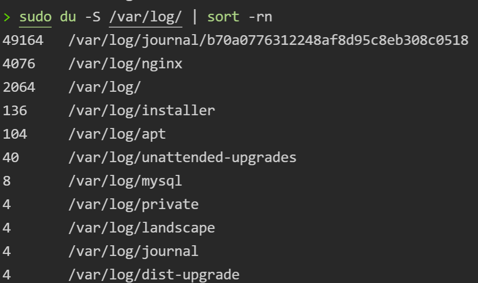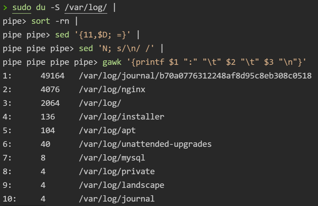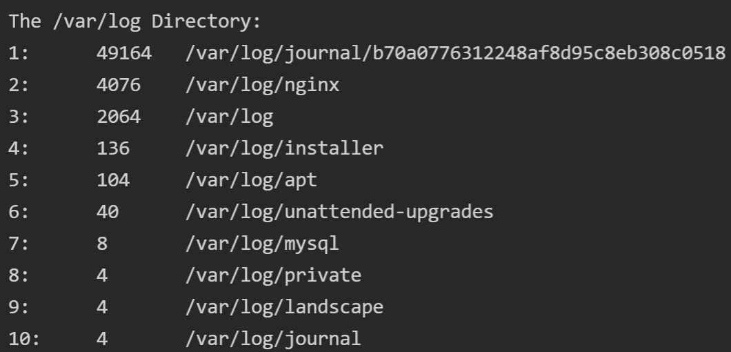 由于我们感兴趣的是占用磁盘空间最多的目录,所以需要使用sort命令对du产生的输出进行排序