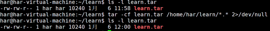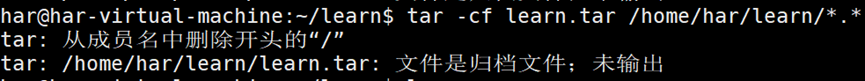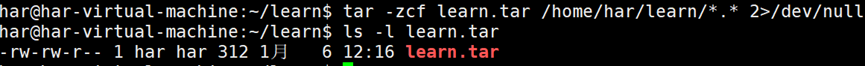 Tar命令会显示一条警告消息,表明它删除了路径名开头的斜线,将路径从绝对路径变为相对路径,就可以解压到文件系统中的任何地方了。可以通过将STDERR重定向到/dev/null文件,不显示该条警告信息。