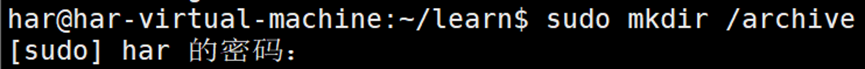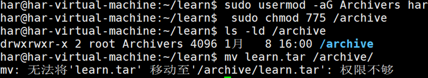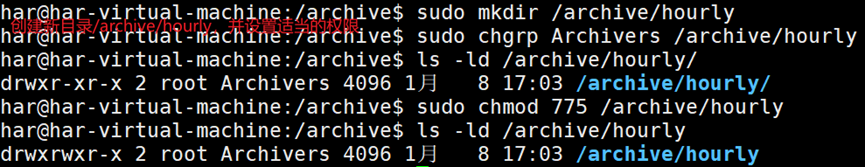 创建好集中归档目录后,需要授予某些用户访问权限,否则,在该目录下创建文件时会提示无权限。