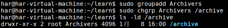 注:Archivers组的所有用户都可以在归档目录中添加和删除文件。