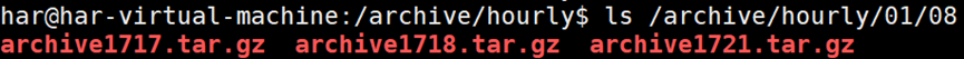 归档文件名archive1717.tar.gz中包含了对应的小时17和分钟17。