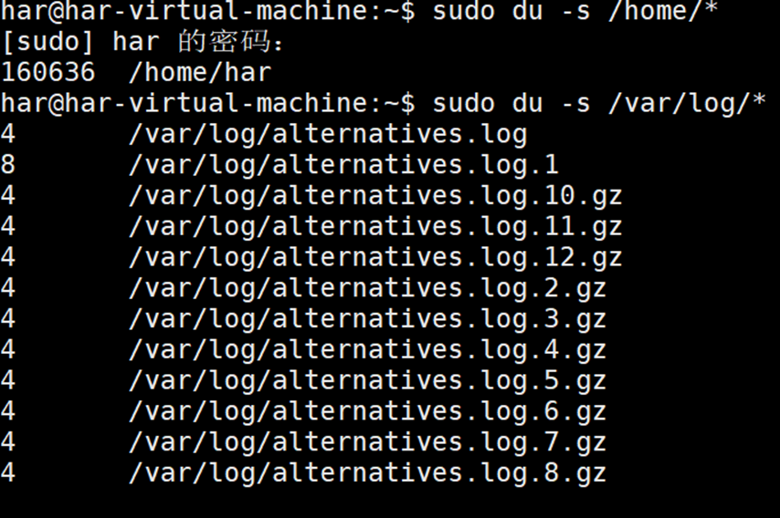 使用du命令总结/home目录下每个用户的$HOME目录的磁盘占用情况: