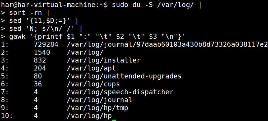 echo "Top Ten Disk Space Usage"