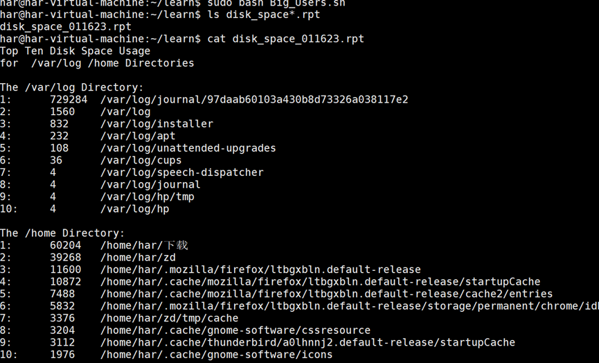 下面的脚本为多个指定目录创建报告,使用了CHECK_DIRECTORIES变量,该变量只设置为包含两个目录。