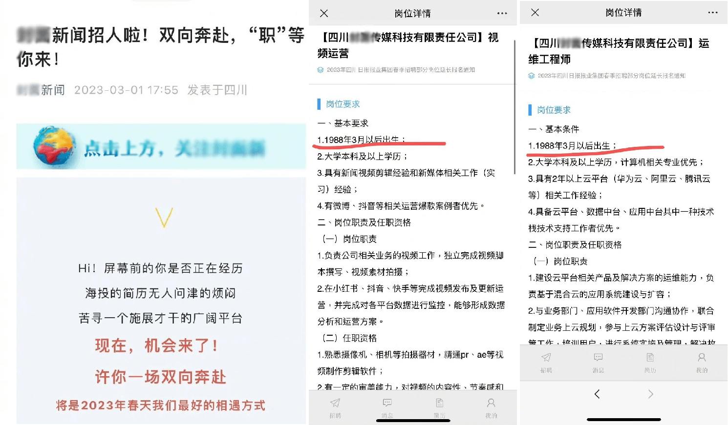 事情是这样的,某媒体发文抨击职场的“35岁”歧视,但后来被扒出,该媒体所属的机构在发布招聘信息时,却明确地标注了受聘者的年龄界限。