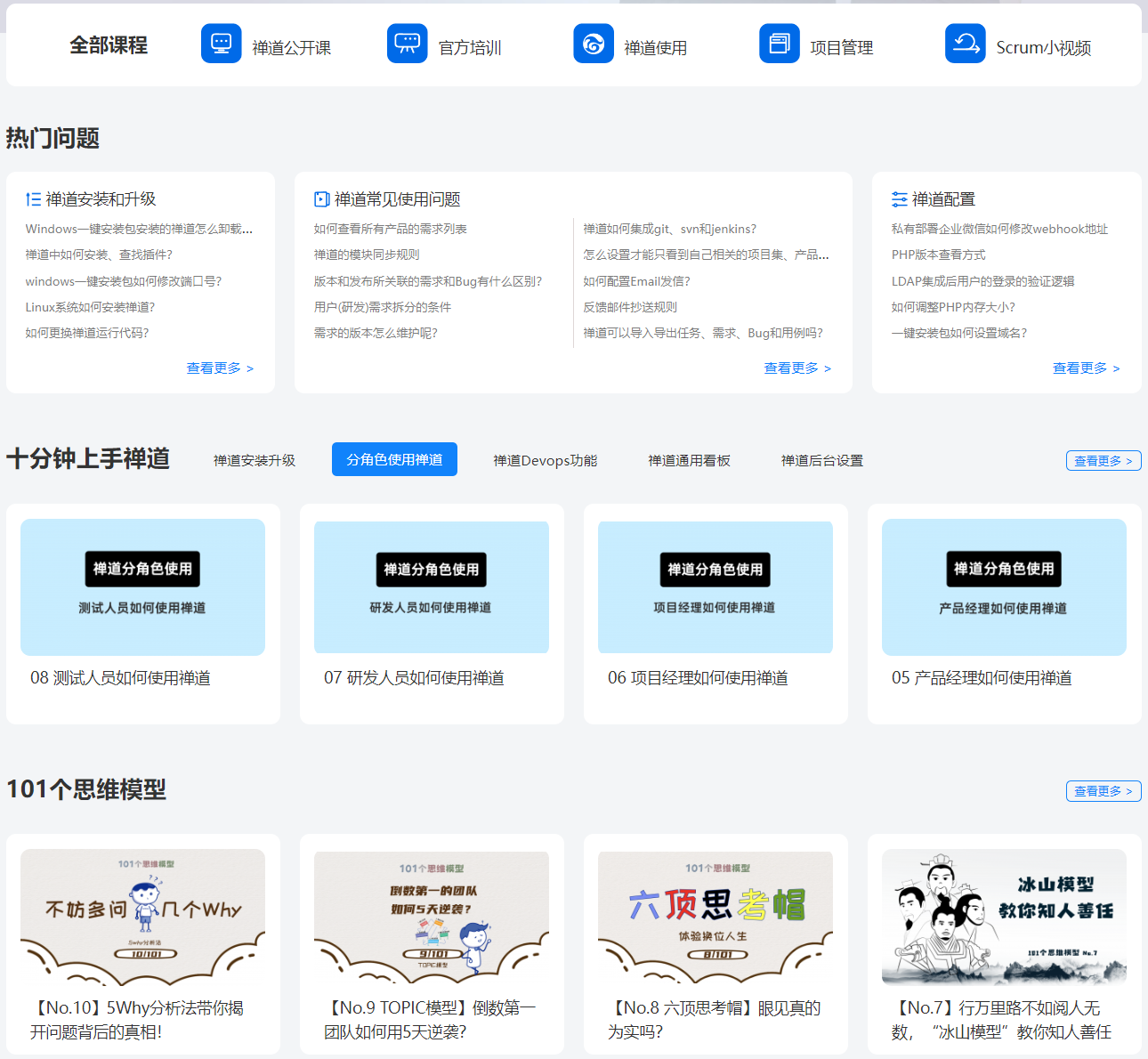 2023年,互联网行业增速放缓,大环境的焦灼和寒意,让每个人对自己的职业规划有了新的思考,学习和增长成为了互联网人当下最迫切的需求。禅道学堂作为禅道社区生态最重要的环节之一,也在禅道用户日益旺盛的学习需求和呼声中,全面升级了禅道学堂,采用全新的课程结构树,逻辑更清晰,排布更合理。2023年的禅道学堂增开了更多课程项目,也新拓展了更多新的内容,从行业大咖的干货内容,到禅道骨干的技能分享,从思维模型的梳理,到项目管理实战经验干货满满的访谈直播。禅道增加更多的干货课程,同时也根据更多细分的维度,设立专项课程,去满足禅道用户在不同阶段和场景下的学习需求。