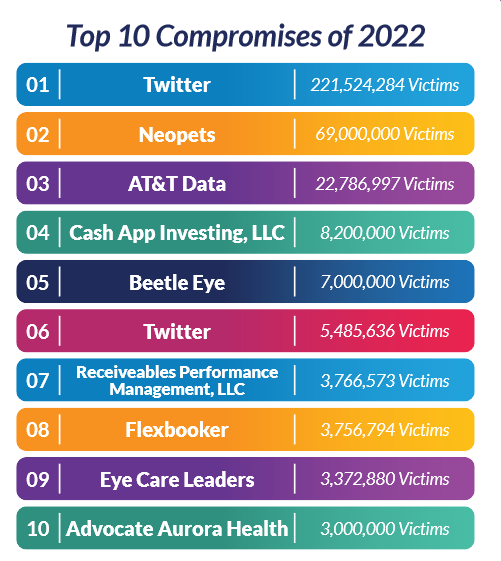 漏洞管理是一种帮助组织识别、评估、确定优先级并修复系统中漏洞的做法。最终,漏洞管理的目标是通过使用修补、加固和配置管理等技术来降低漏洞带来的风险。这有助于确保安全性,同时限制恶意用户可能利用的风险。IT安全的主要职责是防范漏洞。我们都知道,安全漏洞可能代价高昂;根据Ponemon研究所和IBM进行的联合研究,每次数据泄露的平均成本为435万美元,而85%的组织在2022年至少有一次数据泄漏。根据《2022年数据泄露报告》,以下是近年来十大数据泄露和十大数据泄漏属性。