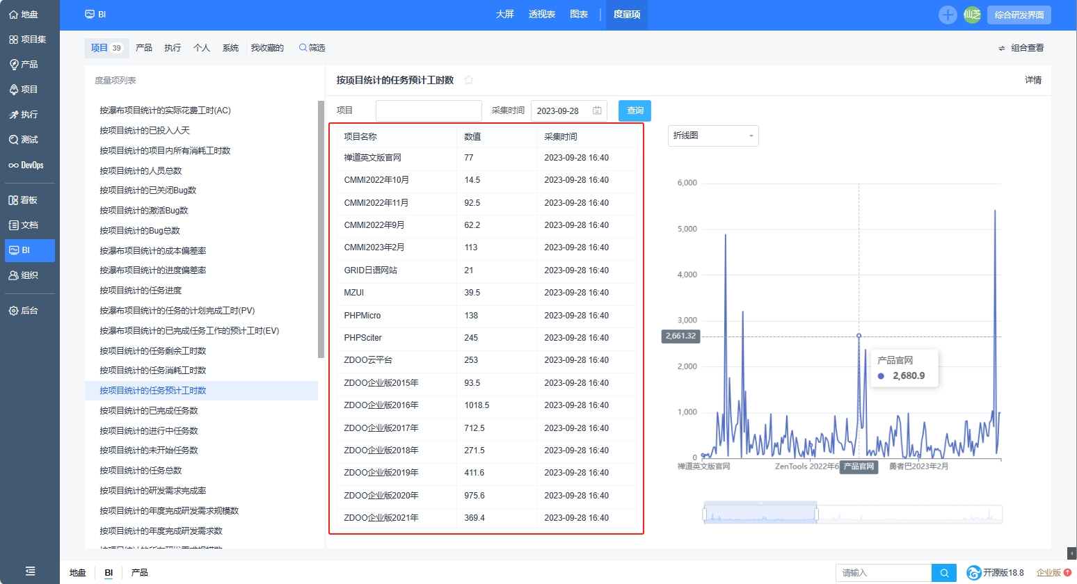 禅道项目管理软件的BI功能为企业提供了全面且强大的数据分析与可视化解决方案。能够精准收集项目全生命周期的海量数据,提供多种可视化图表,内置丰富的度量项,提供“宏观管理维度、效能管理维度、质量管理维度”等多种不同维度下的管理视角。以更直观、更聚焦地呈现项目数据。支持数据的组合查看,管理者可同时查看不同范围下的度量项,通过对多项目数据的深度整合与剖析,为企业高层制定精准战略、优化业务布局提供坚实数据支撑。帮助管理者轻松透过数据表象洞察项目本质,精准定位风险隐患,让企业的管理决策精准高效。