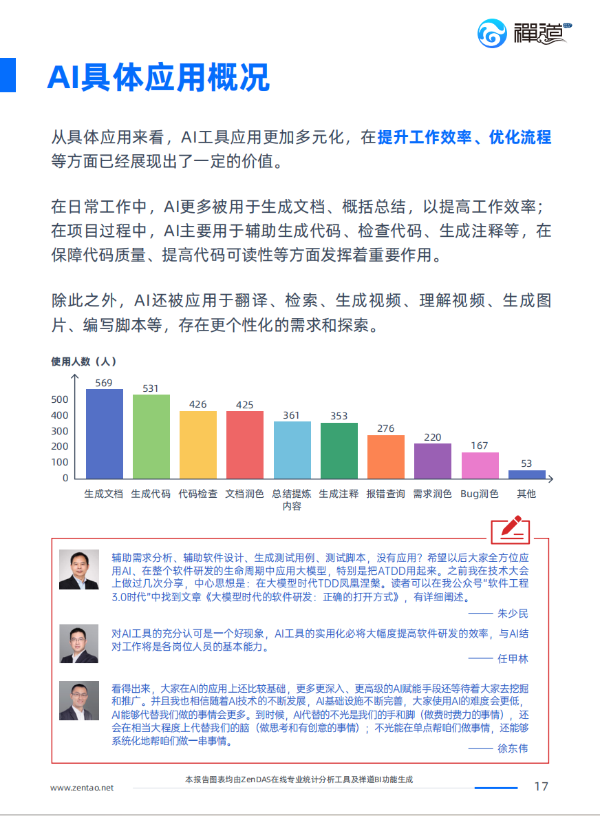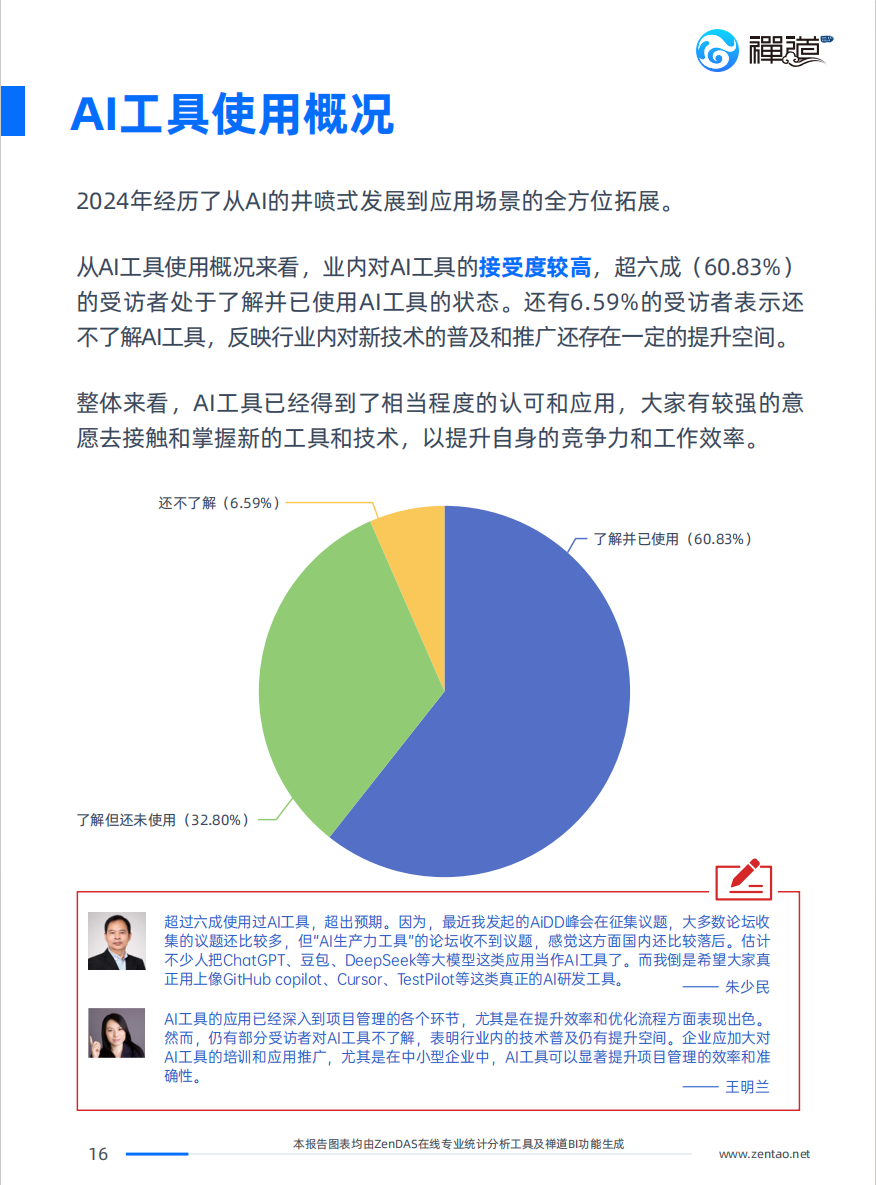 近期禅道发布了《2024 IT行业项目管理调查报告》,报告中对于AI在研发项目管理过程中的应用问题做了深入的调研,并通过专业的数据分析工具ZenDAS,对数据样本做了客观、深入的分析。