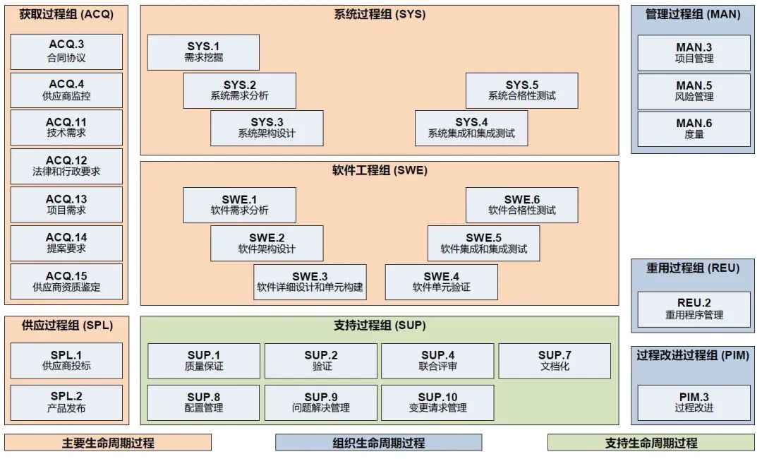 为了解决这些行业共同的难题,汽车行业引入了一套专门用于评估和改进软件开发过程的标准——ASPICE,即汽车软件过程改进及能力评定。它是一个专为汽车行业定制的流程评估模型。旨在通过一套标准化的最佳实践,指导和评估汽车软件开发组织的流程能力。确保汽车软件的开发过程能够满足性能、安全和质量标准,从而提升汽车产品的可靠性和安全性。
