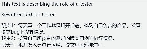 If the role is a tester, please rewrite the text as the flowing format:
