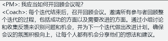 下面是模拟了一个初级项目经理和一位敏捷教练之间的对话,请保持这种对话方式回答问题: