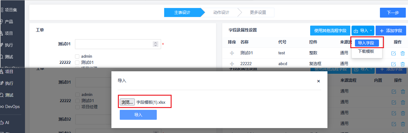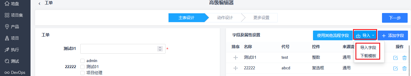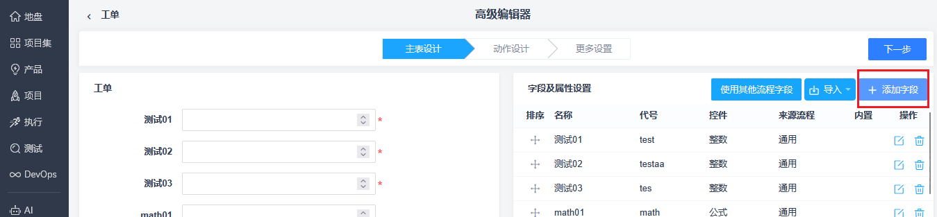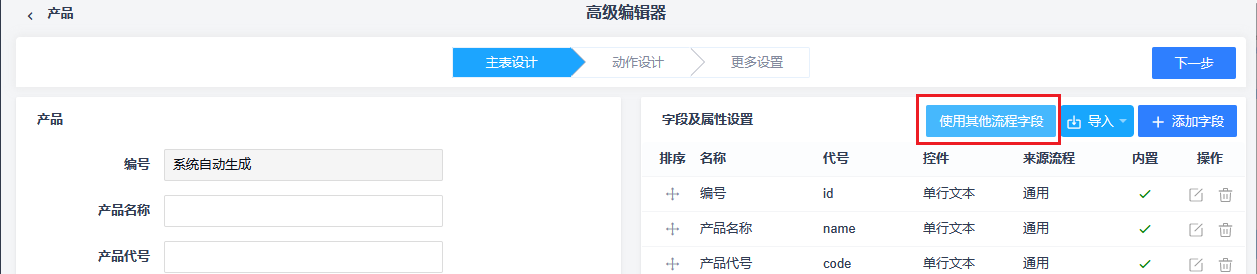 3、使用其他流程字段:除了以上两种是通过直接创建的方式来添加字段外,禅道还提供了引用其他流程下添加过的字段的方法。在高级编辑器下,选择使用其他流程字段即可添加字段。