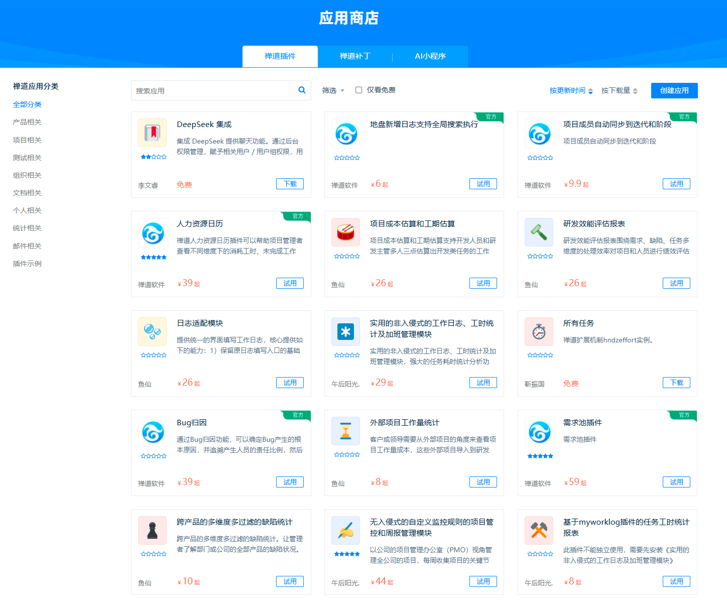 此外禅道还提供丰富的插件,用户可以根据自己的使用场景和实际需求,选择需要的适配插件,最大限度压缩企业项目管理工具的运营成本,让企业的每一分钱都花在刀刃上。